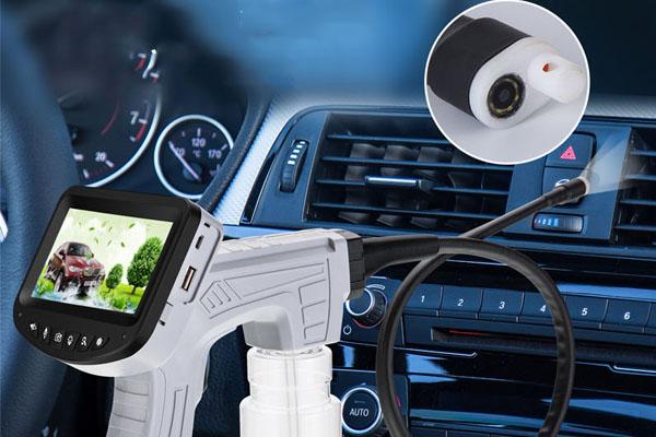 Sử dụng camera nội soi để kiểm tra các ngóc ngách của dàn lạnh ô tô, giúp xác định lượng bụi bẩn và chuẩn bị cho việc vệ sinh.